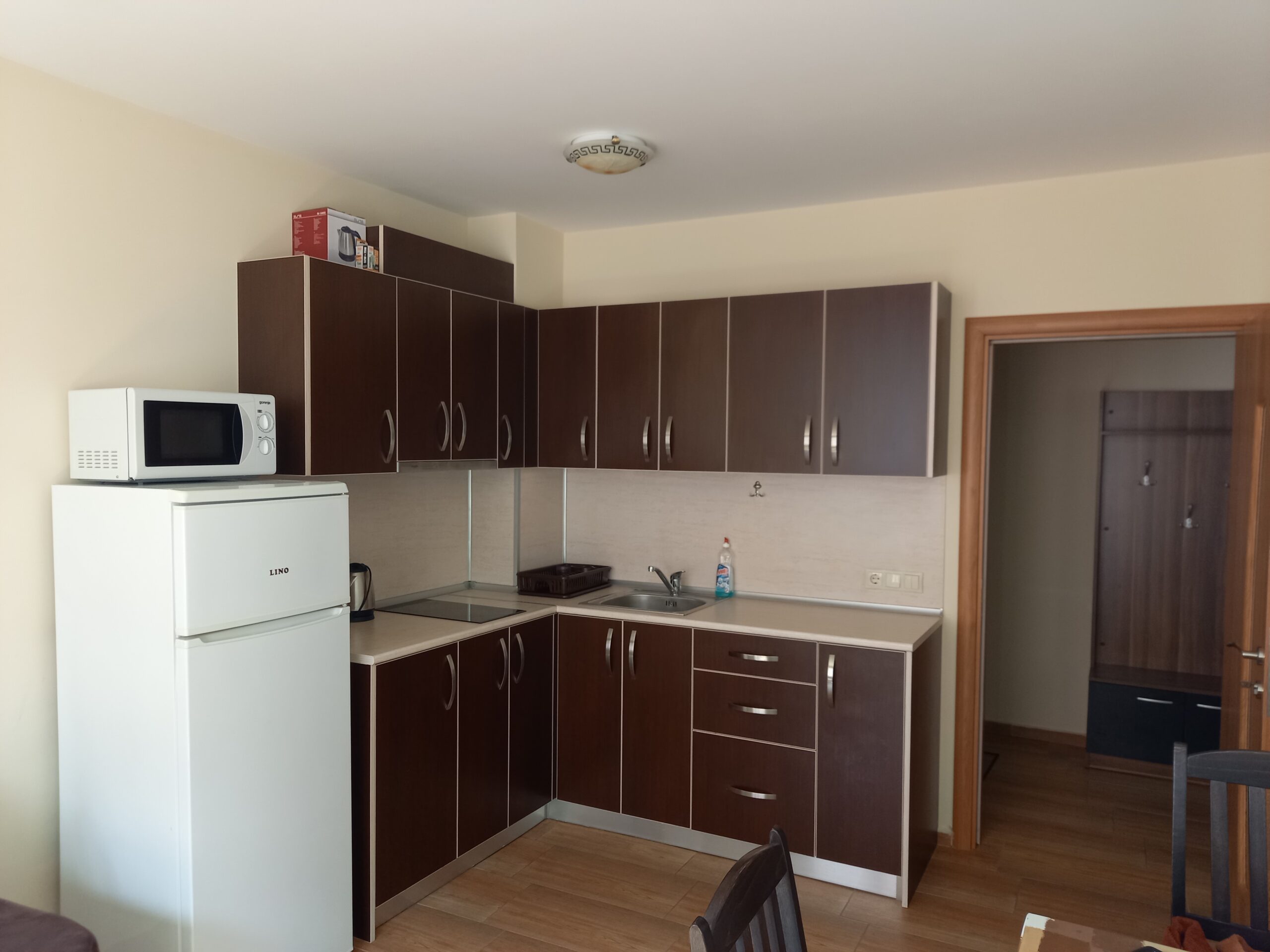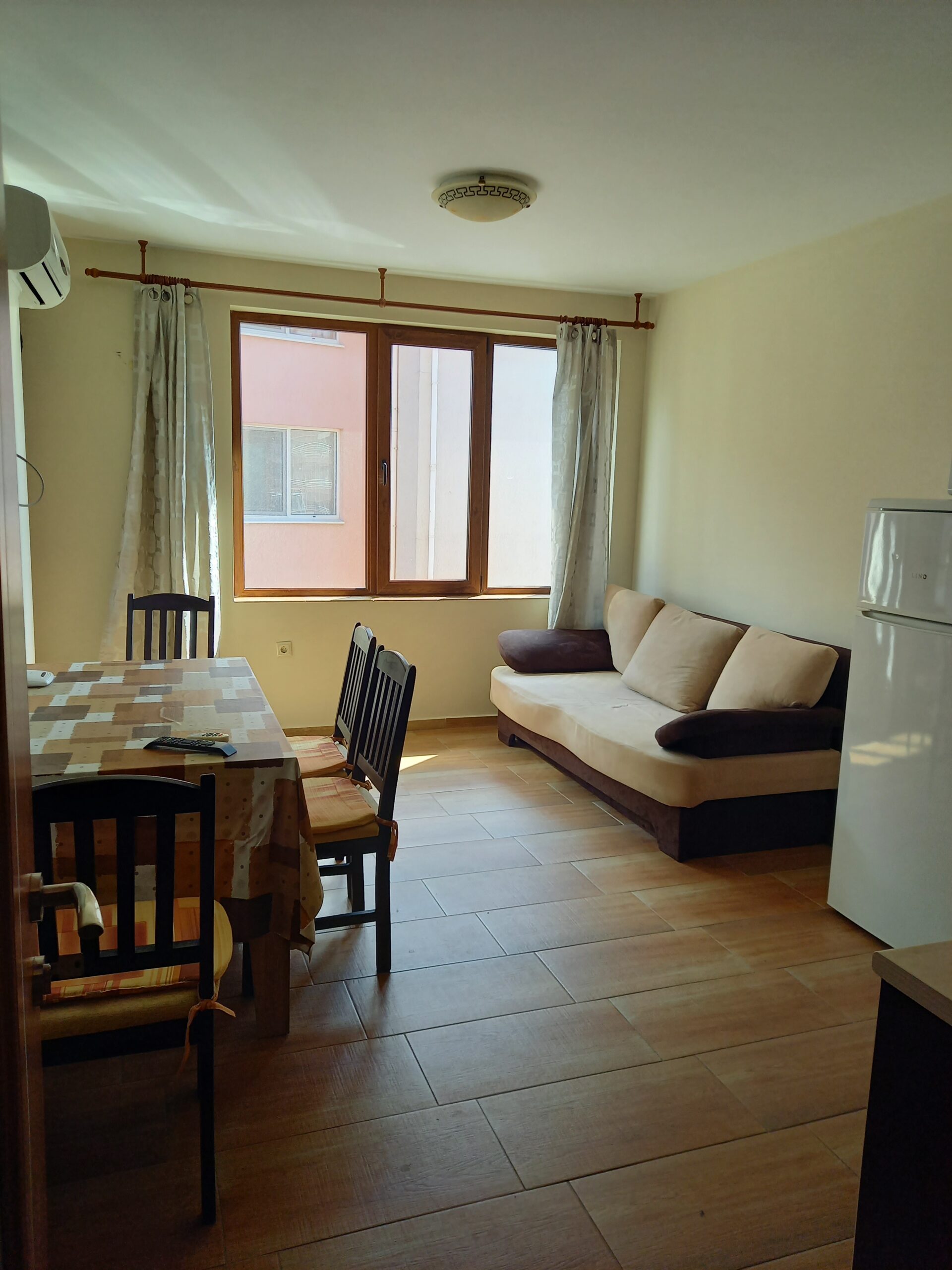 Двустаен апартамент на ул. Европа №3 в близост до базата на „Софарма“. Апартамента е разположен на 4-ти етаж с североизточно изложение, разполага с всекидневна оборудвана с кухня, кът за хранене и разтегателен диван, спалня – с двойно легло, коридор, санитарен възел и широк балкон. В близост до сградата има бистро множество магазинчета, няколко ресторанта. Дистанцията до плажа е само 80 метра, автогарата е на около 300 метра а центъра на града окло 400 метра, локацията е много добра.