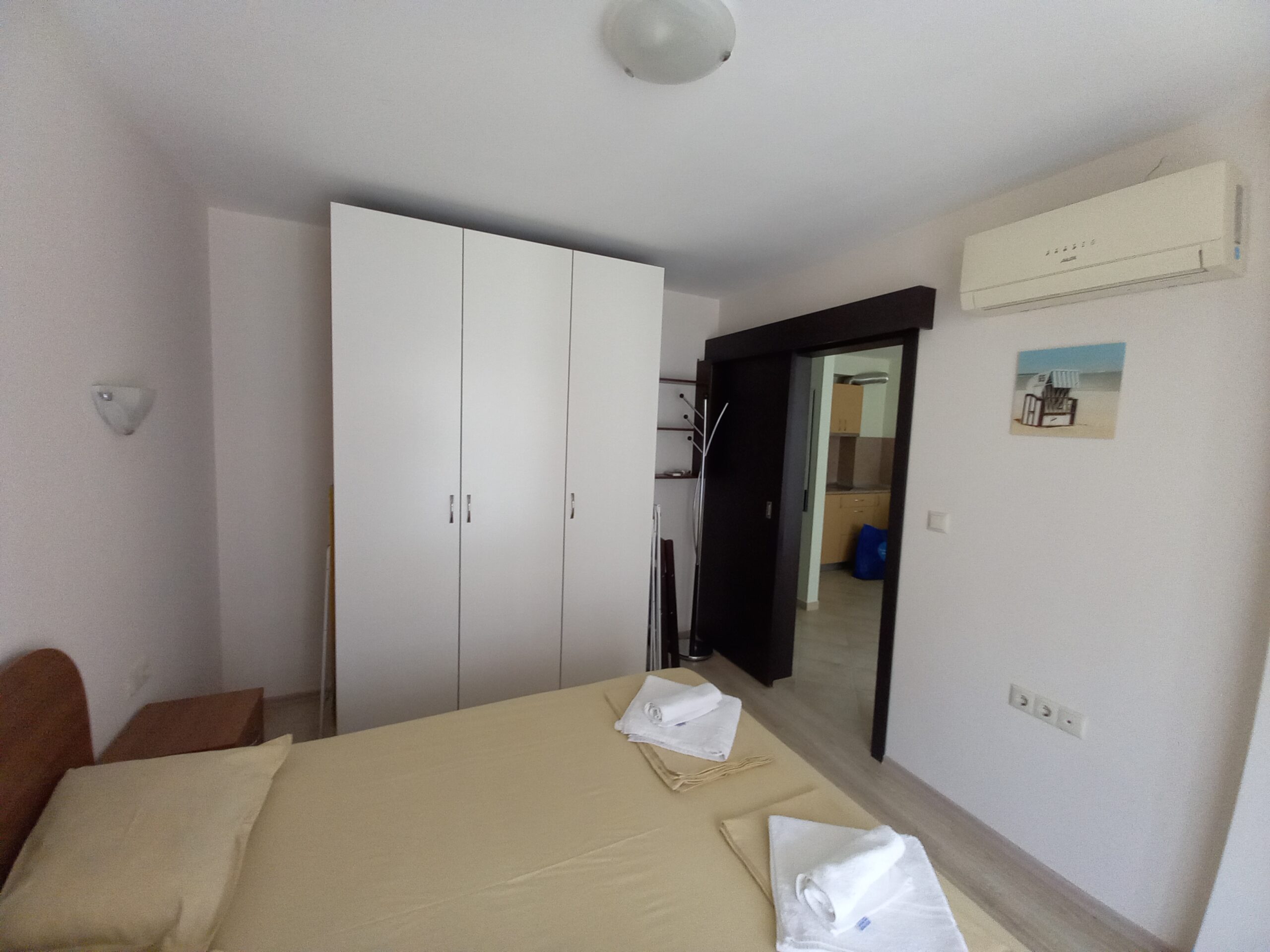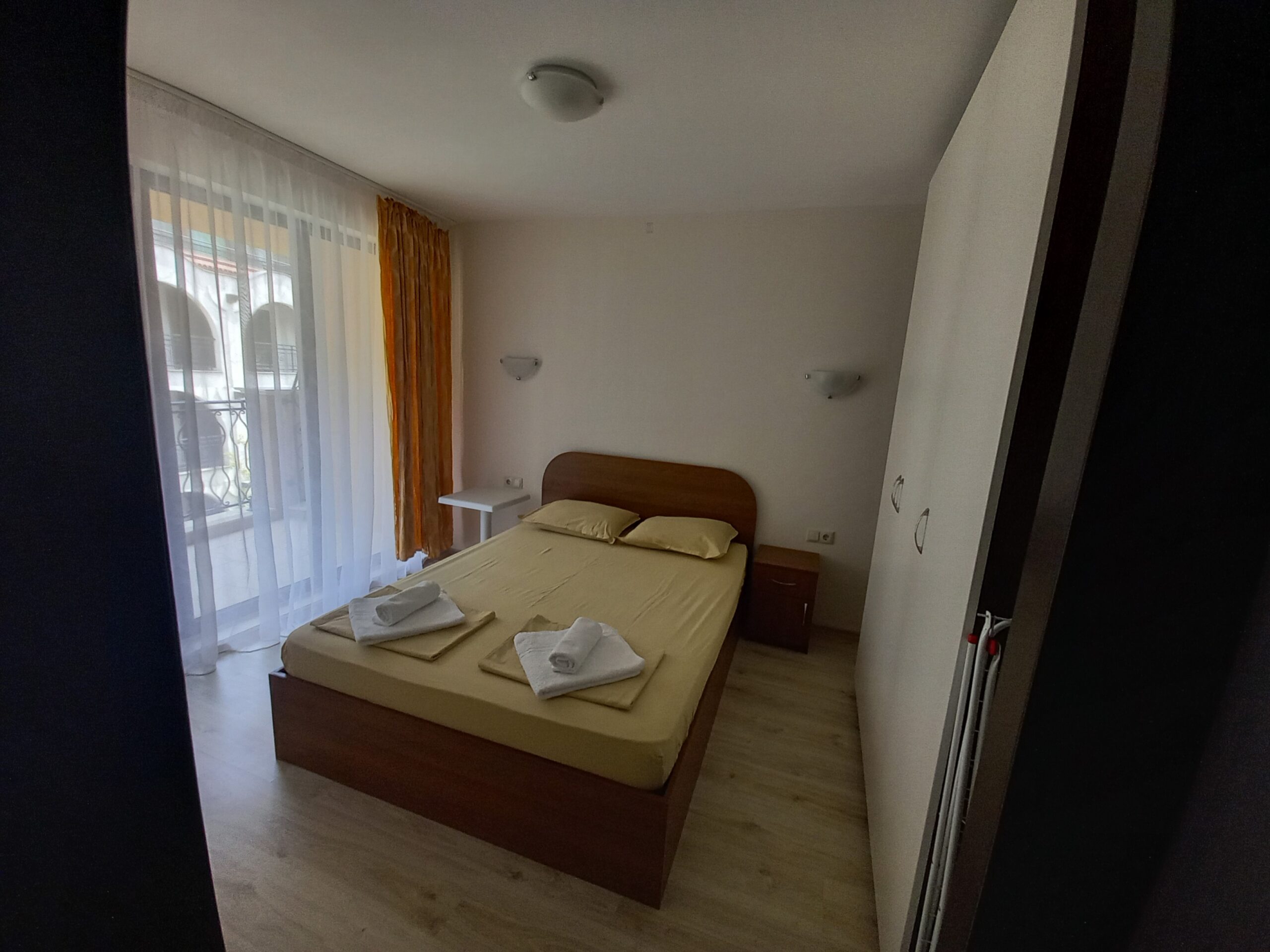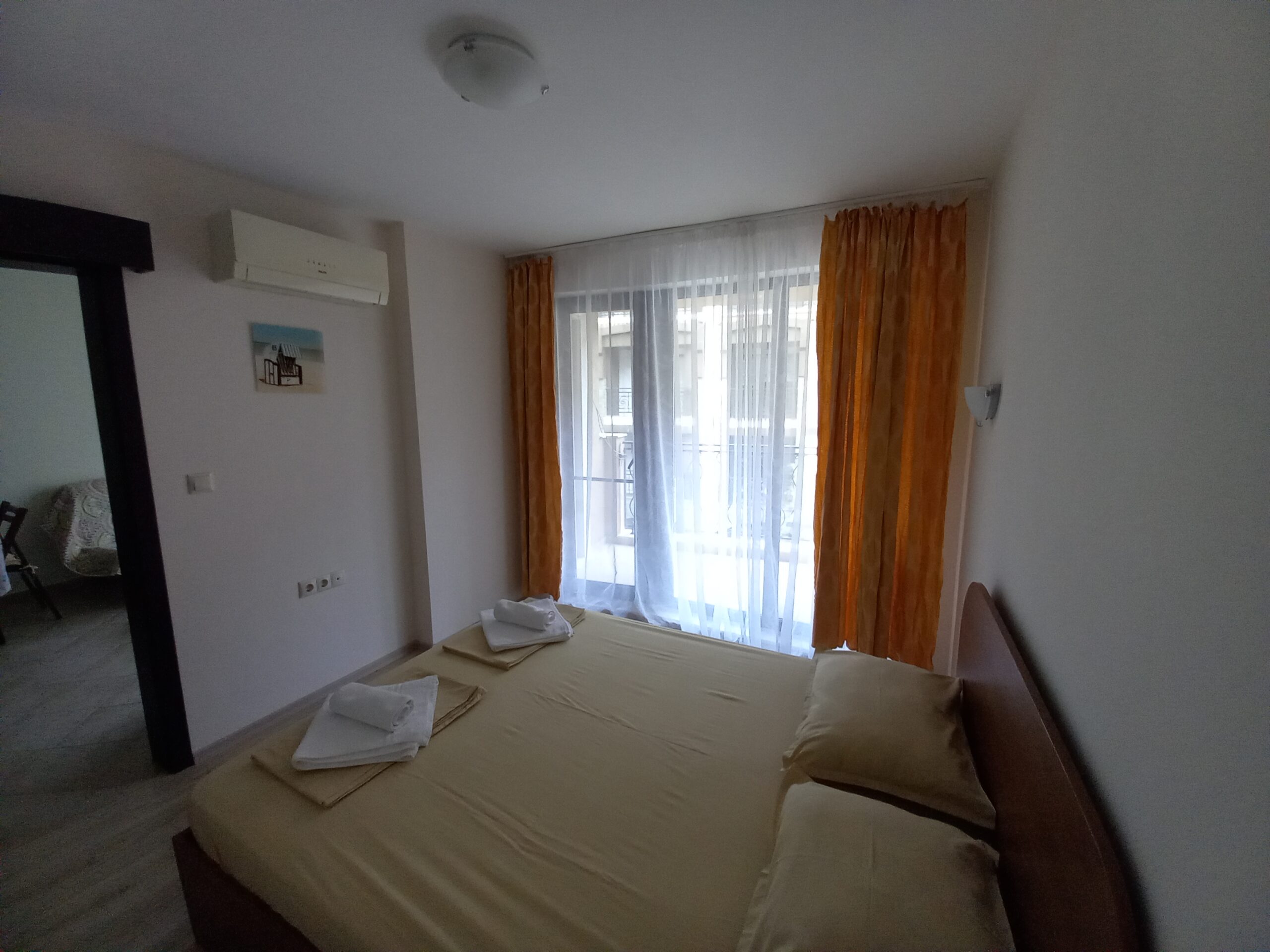 Компактен двустаен апартмент на ул. Велека №10 срещу комплекс „Роуз Гардън“. Апартамента е разположен на 4-ти етаж, разполага с всекидневна и спалня, санитарен възел и балкон, до който има достъп и от двете стаи, обурудвана кухня, телевизор във всекидневната кът за хранене, компактна пералня. В спалнята има двойно легло 145 см, във всекидневна – разтегателен диван, комфортно настаняване за 2-ма възрастни и 1 или 2 деца.